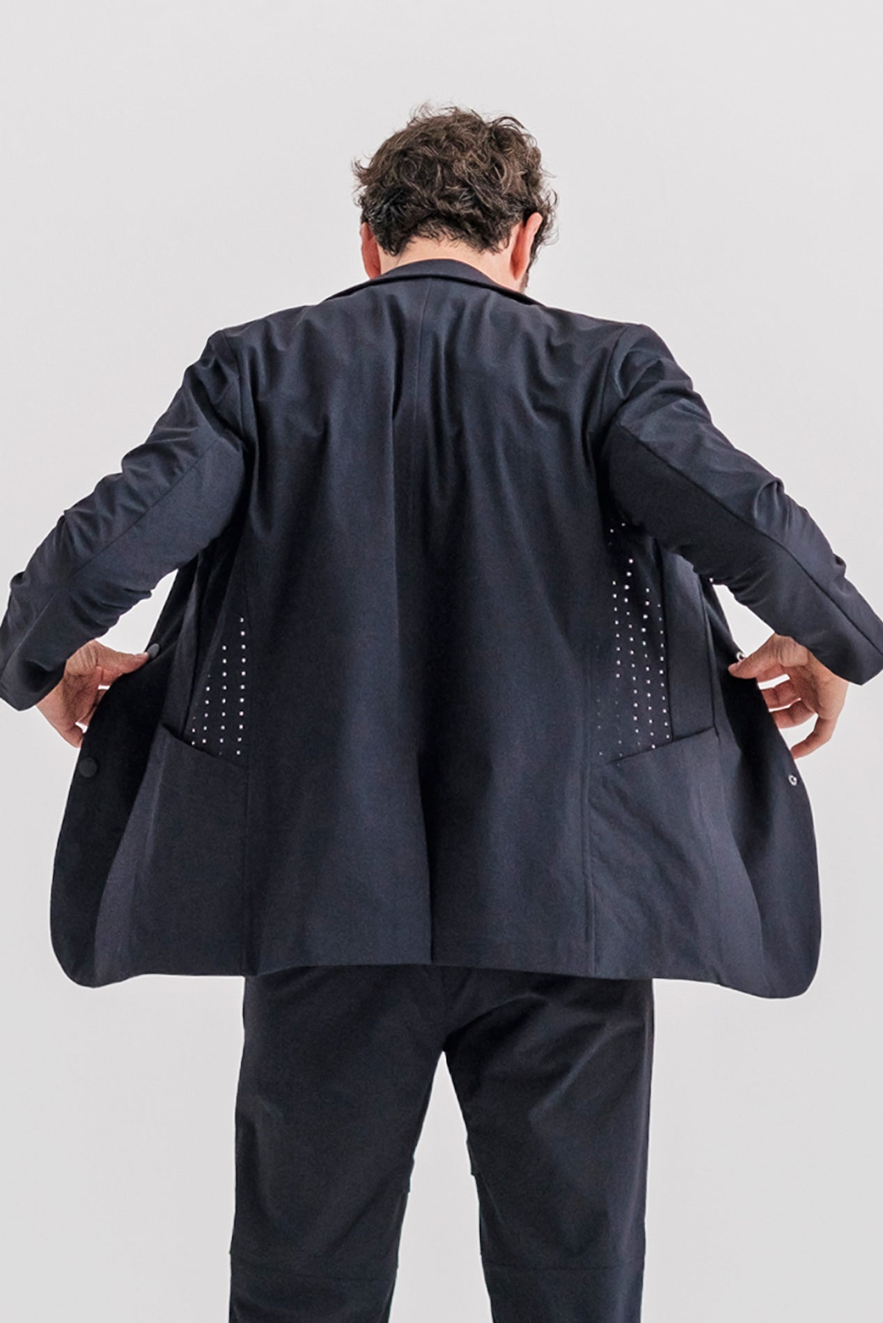 NAVY PLEATED SUIT BLAZER